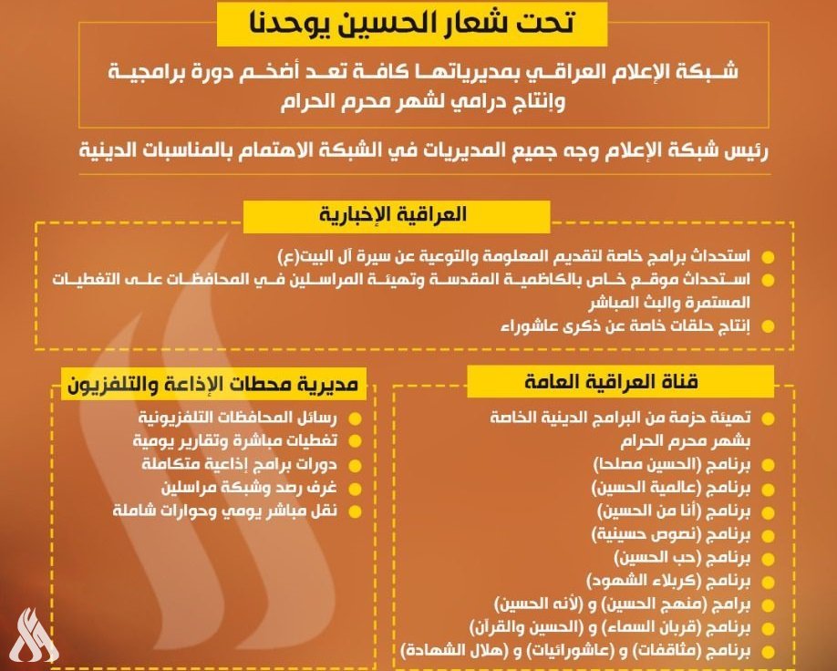 شبكة الإعلام العراقي تعدّ أضخم دورة برامجية وإنتاج درامي لشهر محرم الحرام