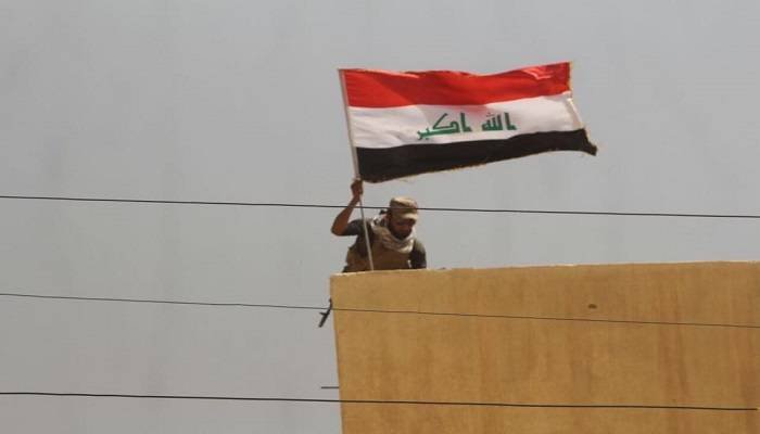 رفع العلم العراقي فوق مبنى مصرف المتقاعدين في حمام العليل