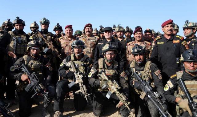 العبادي يتفقد القوات الامنية بالموصل ويتعهد برفع العلم العرقي فيها