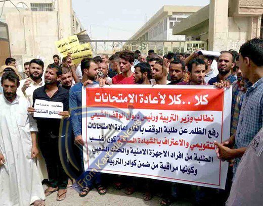 طلبة الوقف الشيعي في النجف وكربلاء يتظاهرون لإلغاء الامتحان التقويمي