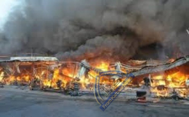 اندلاع حريق كبير في سوق خضروات في كربلاء