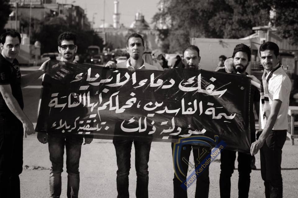 متظاهرو كربلاء يستنكرون تفجيرات بغداد ويحملون السياسيين مسؤوليتها