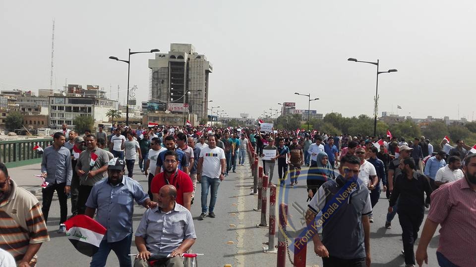 متظاهرو التحرير يعبرون جسر الجمهورية باتجاه باب التشريع قرب الخضراء