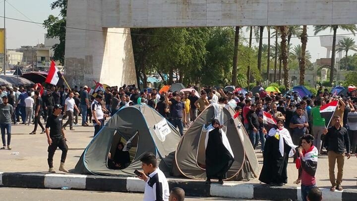 نصب الخيم في ساحة التحرير للبدء باعتصام مفتوح لحين تنفيذ مطالب الاصلاح
