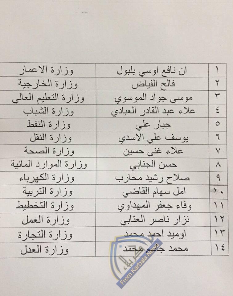 بالوثيقة.. تعرف على مرشحي كابينة العبادي الوزارية الجديدة