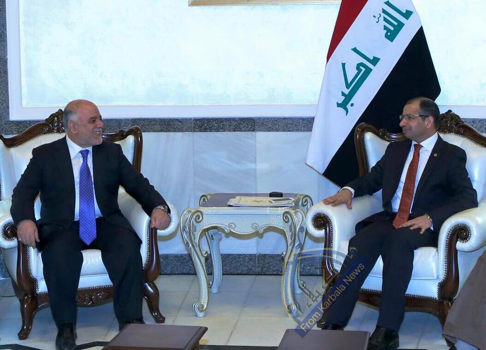 رئيس مجلس النواب سليم الجبوري يجتمع في مكتبه مع رئيس مجلس الوزراء حيدر العبادي قبيل انعقاد الجلسة لبحث التغيير الوزاري