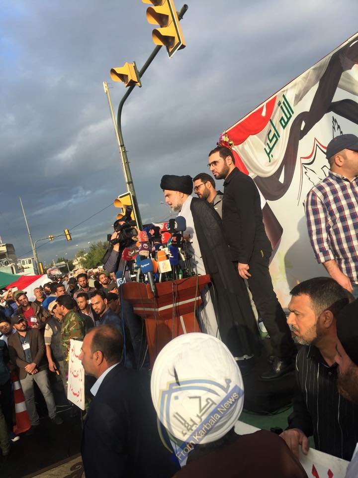 بالصور ...السيد الصدر في خيمة الاعتصام داخل الخضراء مع شدة الامطار