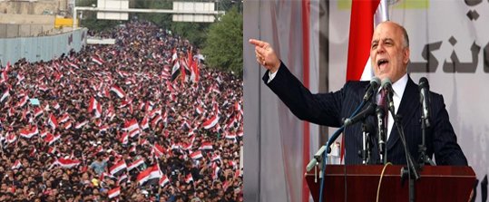 العبادي في كلمته :يمهل الكتل اسبوعا ويؤكد على سلمية التظاهرات