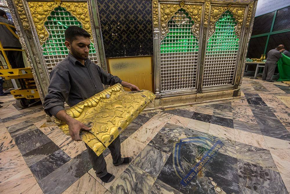 تفكيك الجزء العلوي من شباك ضريح الامام العباس (ع)