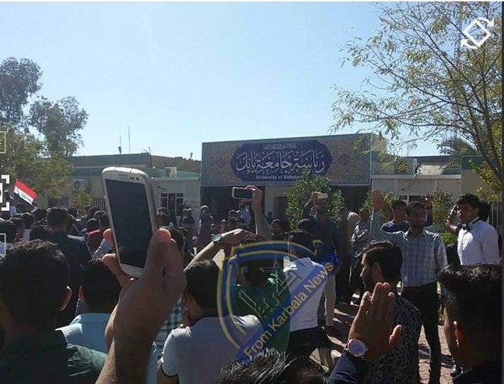 الالاف يتظاهرون في جامعة بابل ضد وزير التعليم والفساد المستشري