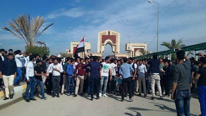 المئات من طلبة جامعة كربلاء يتظاهرون ضد وزير التعليم العالي حسين الشهرستاني