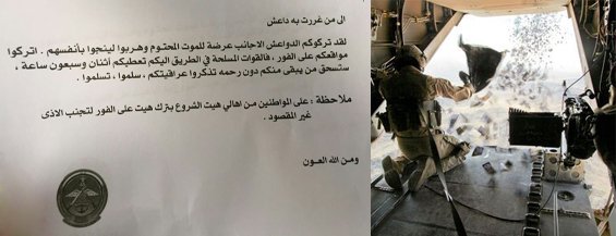 القوة الجوية تلقي آلاف المنشورات في الانبار تبشّرهم بالاستعداد للخلاص من “داعش”