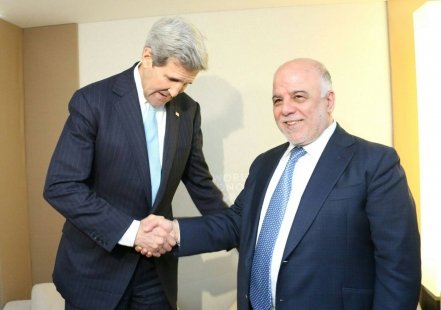العبادي وكيري يبحثان التحديات العسكرية والامنية والاقتصادية والماليةالعراقية في دافوس