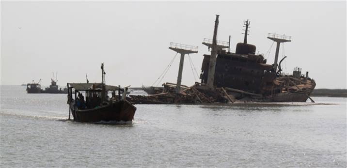 احتجاز سفينة بنمية في البصرة بعد اصطدامها بمحطة مياه شاطئية