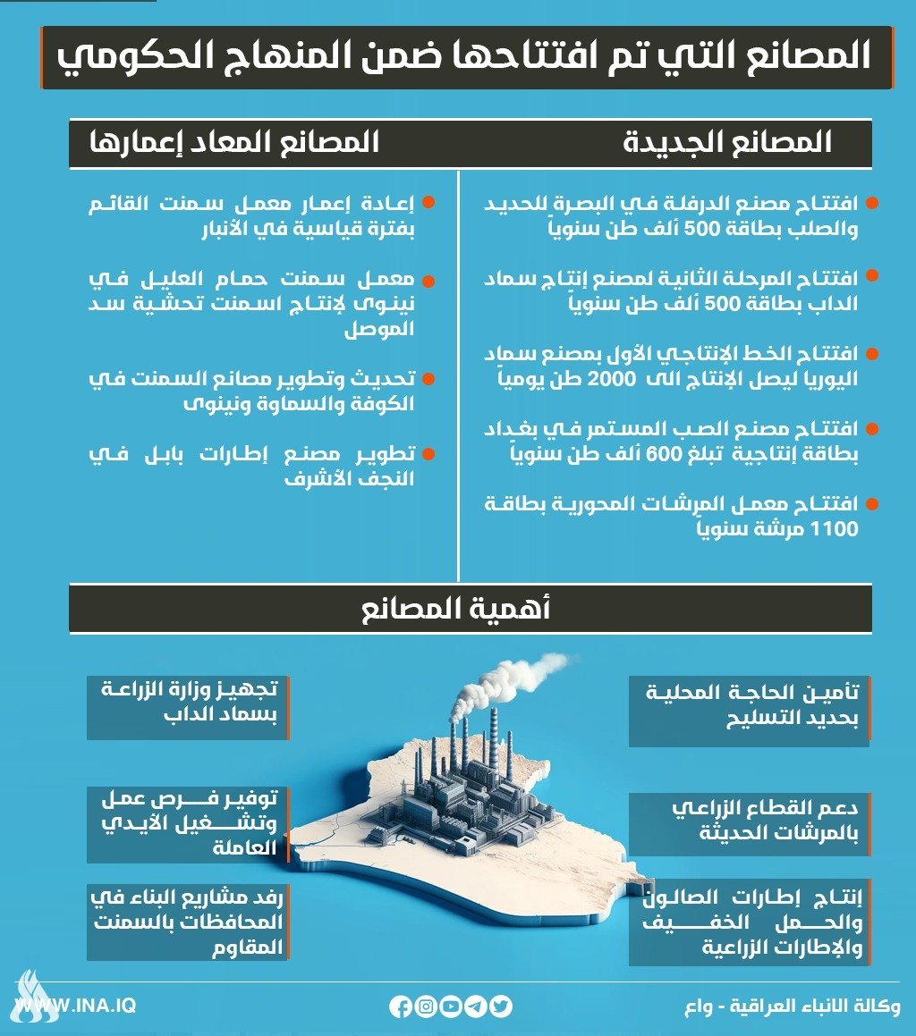 إنفوغراف.. المصانع الجديدة والمُعاد إعمارها وفقاً للمنهاج الحكومي