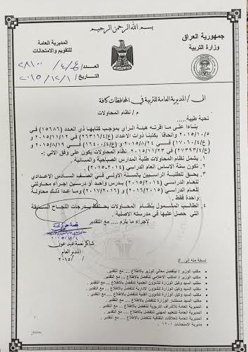 التربية تصدر ضوابط نظام المحاولات للسادس الإعدادي وتؤكد شموله للدراستين الصباحية والمسائية