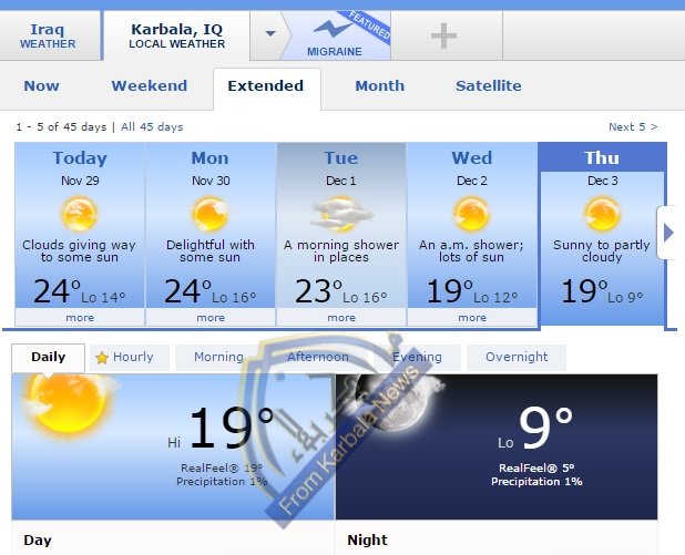 طقس كربلاء: صحو مع حرارة 19 مْ يوم الزيارة الاربعينية