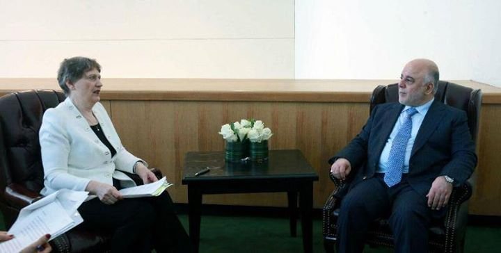 العبادي يبحث مع رئيس منظمة (UNDP) هلين كلارك مساعدة العراق في القضايا الانسانية