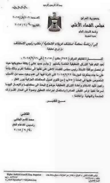 مدحت المحمود يرفض طلب نقل دعوى جاسم المالكي إلى محكمة أخرى غير محكمة كربلاء