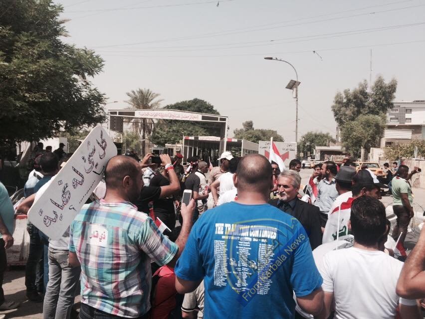 متظاهرو بغداد والناصرية يعتصمون في احد ابواب المنطقة الخضراء