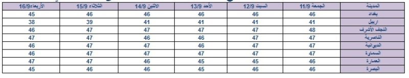 الأنواء الجوية تنشر جدولاً يبين ارتفاع درجات الحرارة خلال الأسبوع المقبل