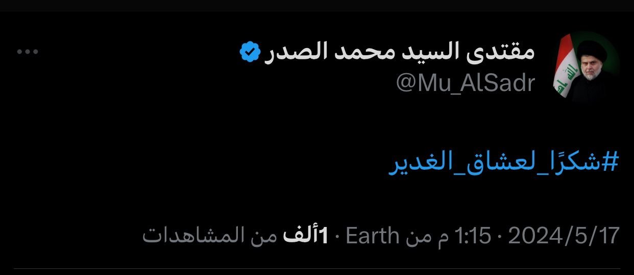 الصدر مغرداً بعد الصلاة الموحدة: شكرًا لعشاق الغدير