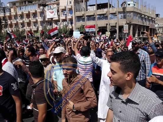 جماهير كربلاء تخرج بتظاهرة كبيرة لسؤء الخدمات وتطالب بإلغاء مبلغ الخمسة مليون
