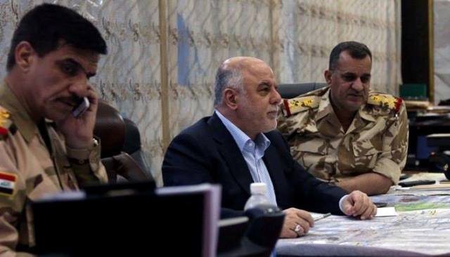 العبادي يتابع في مقر قيادة العمليات المشتركة آخر تطورات العمليات العسكرية