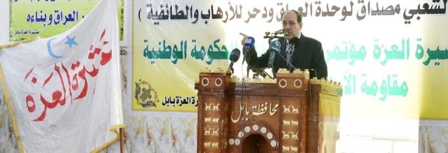 المالكي: الحشد الشعبي أفشل المؤامرات في ساحات الاعتصام ومقاتلوه لم ينسحبوا أو يتآمروا
