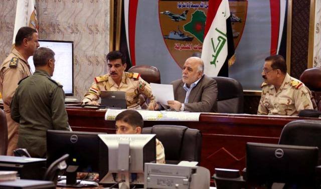 العبادي يزور غرفة العمليات المشتركة لمتابعة آخر تطورات العمليات العسكرية