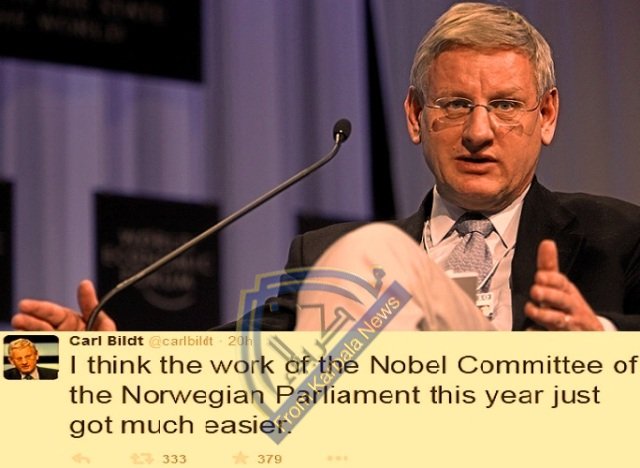 رئيس الوزراء السويدي السابق يتوقع منح إيران وامريكا جائزة نوبل للسلام مناصفة