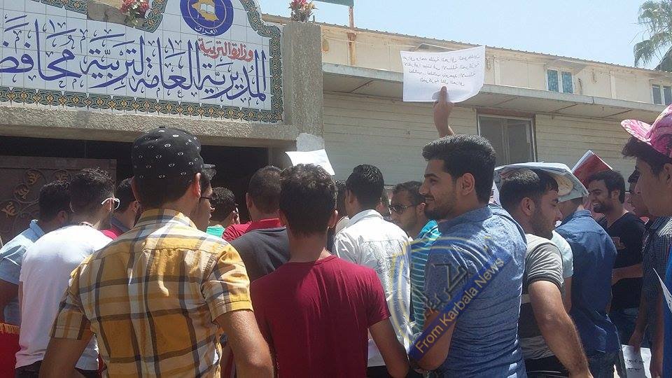 طلبة السادس الاعدادي في كربلاء يتظاهرون من أجل تأجيل امتحانتهم بعد شهر رمضان