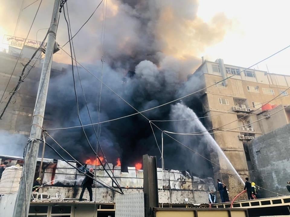 اندلاع حريق كبير بمحال تجارية في كربلاء