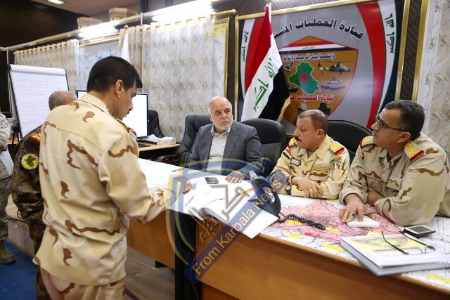 العبادي يزور مقر العمليات المشتركة ويشيد بالانتصار في مصفى بيجي