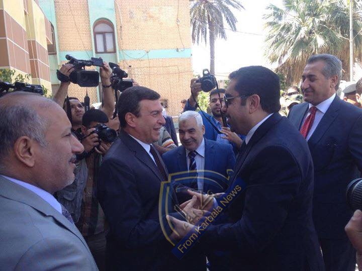 محافظ كربلاء عقيل الطريحي يُستقبل وزير البيئة قتيبة الجبوري في مبنى محافظة كربلاء .