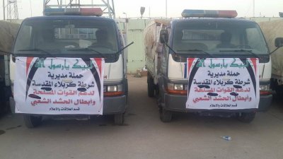 شرطة كربلاء ترسل شاحنات من المواد الغذائية إلى إبطال الحشد والقوات الأمنية في تكريت