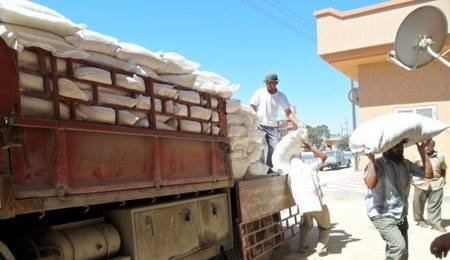 التجارة ترسل شاحنات محملة بمادة الطحين من كربلاء الى محافظة الانبار