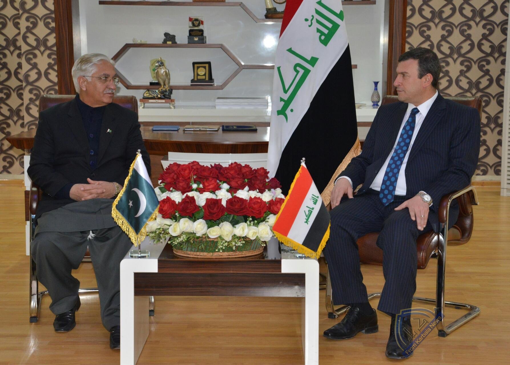 محافظ كربلاء المقدسة يبحث مع رئيس مجلس الشورى الباكستاني التعاون الاقتصادي