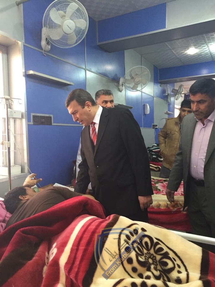 محافظ كربلاء يتفقد جرحى الحشد الشعبي في مستشفى الحسين التعليمي