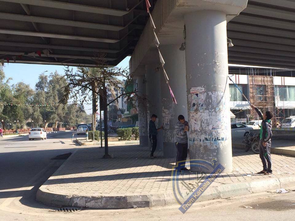 حملة تنظيف وازالة جميع الاعلانات و الدعايات الانتخابيه من مجسر الضريبة بكربلاء