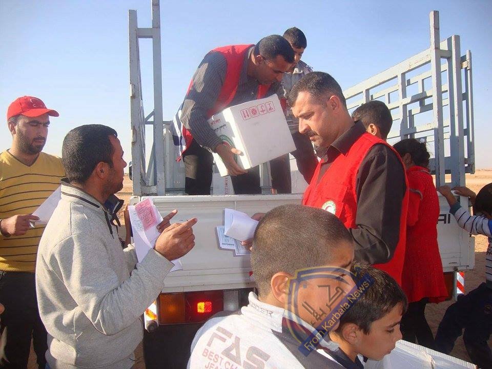 الهلال الاحمر فرع كربلاء توزع مواد اغاثية على نازحي الانبار
