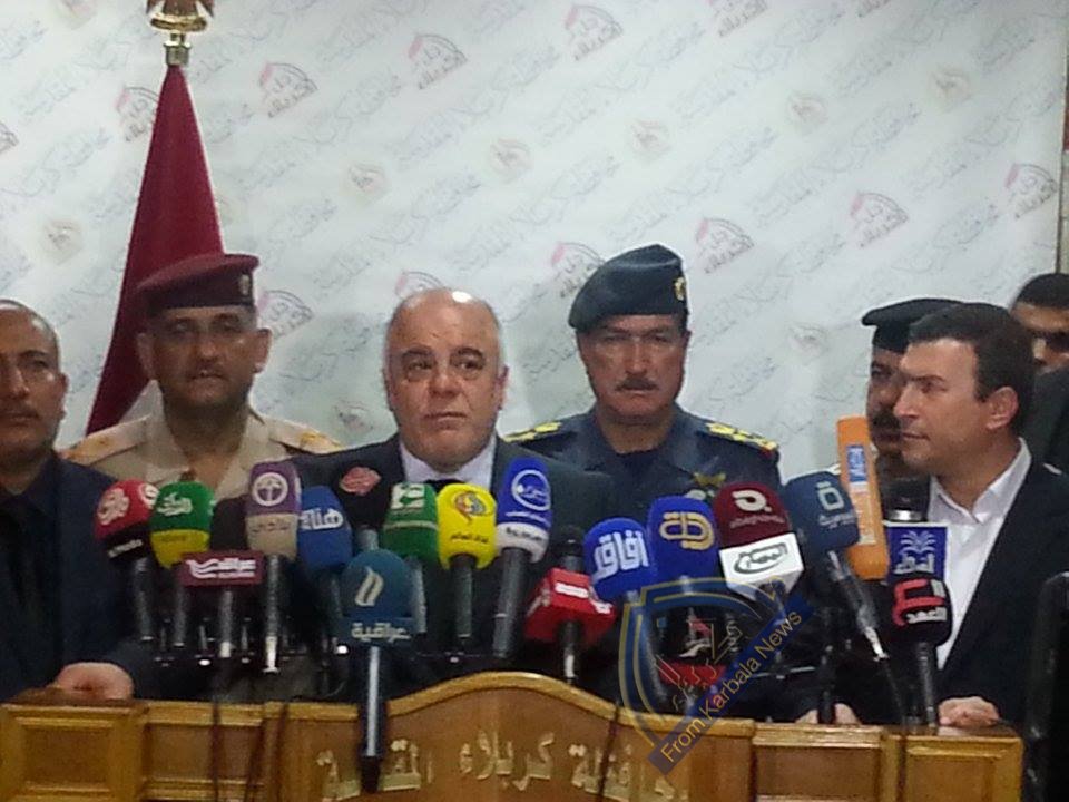 العبادي يعقد اجتماعاً بكربلاء مع وزير الداخلية والمحافظ ورئيس المجلس والمسؤولين الامنيين