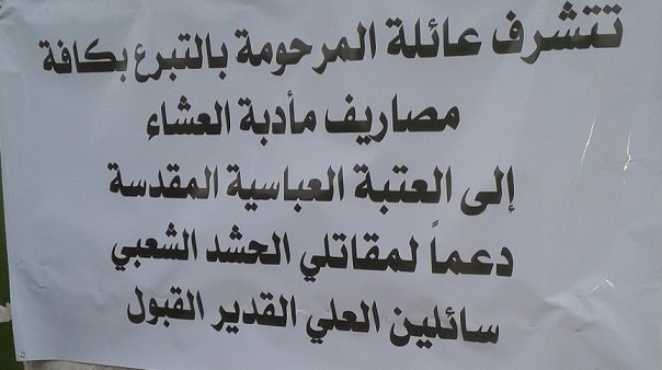 مهندس في كربلاء يتبرع باطعام رجال الحشد الشعبي والمتطوعين ثوابا على روح زوجته الفقيدة.