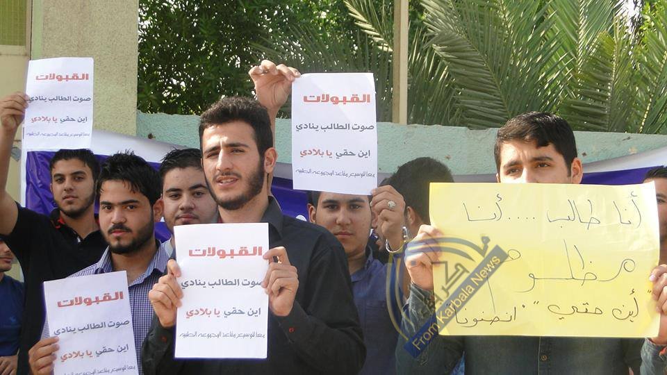 طلبة السادس اعدادي في كربلاء يرددون شعار "ارحموا من في الارض يرحمكم من في السماء"