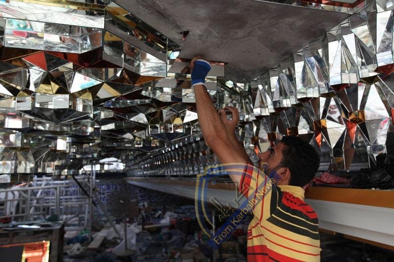 استمرارية العمل في تزجيج السطح الداخلي لمشروع تسقيف صحن أبي الفضل العباس(عليه السلام)