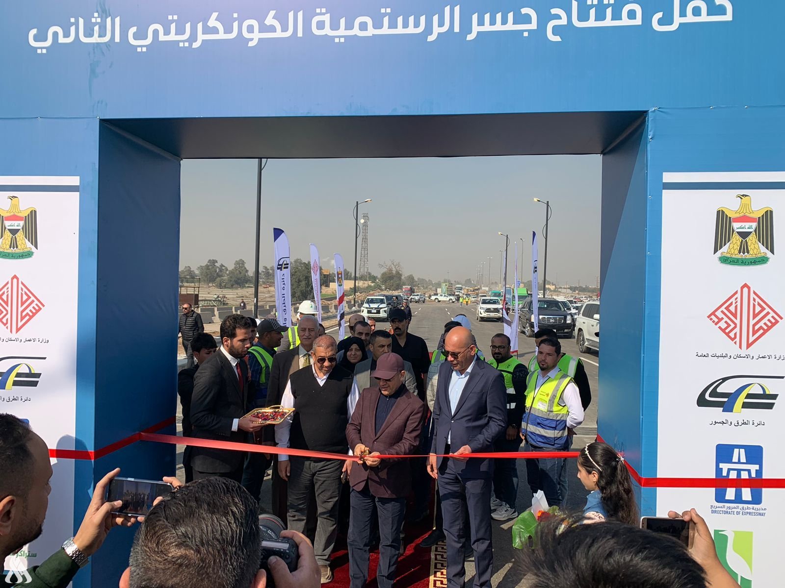 وزير الإعمار يفتتح جسر الرستمية الكونكريتي الثاني