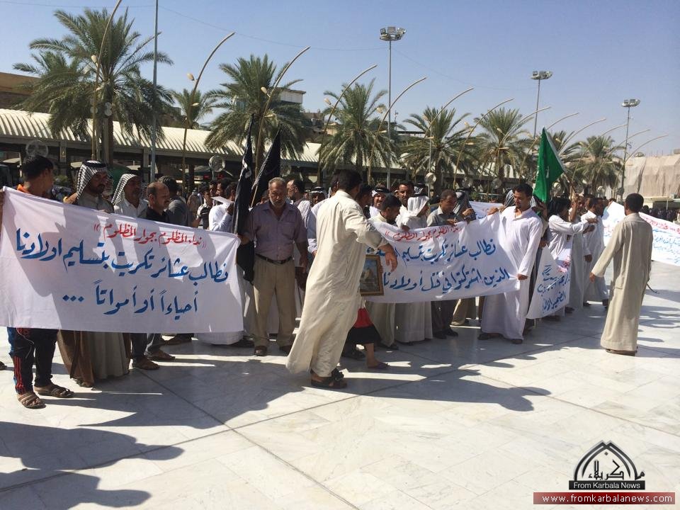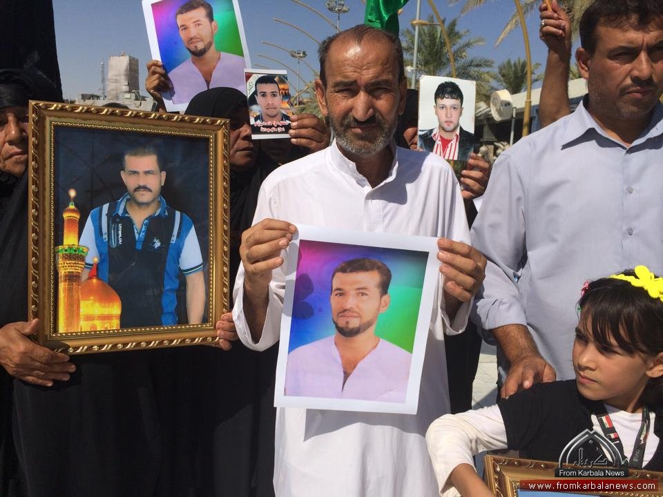 اعتصام العشرات من اهالي ضحايا سبايكر من جميع انحاء المحافظات بين الحرمين الشريفين في كربلاء