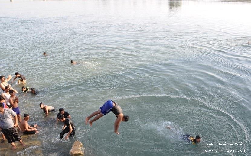 شباب كربلائيون يتحدون المخاطر ويفضلون السباحة في الانهار هرباً من ارتفاع درجات الحرارة