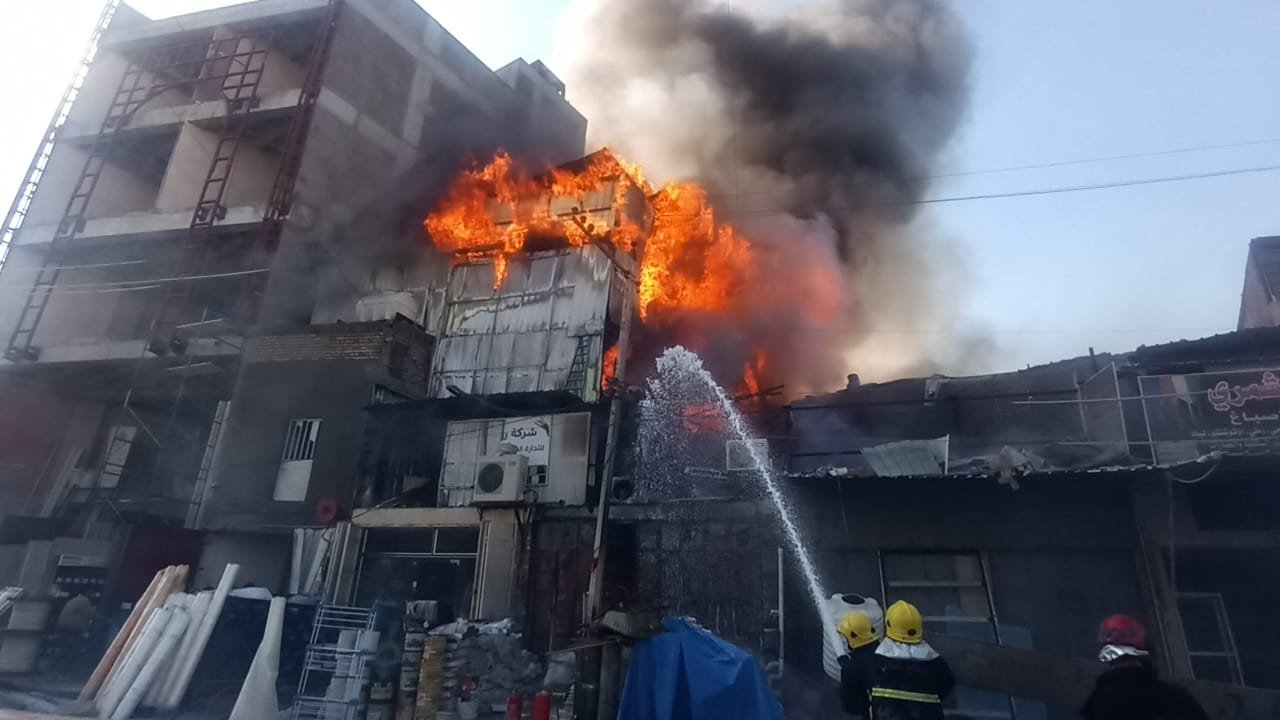 فرق الإطفاء تكافح حريقا اندلع بمخزن تجاري في الكرادة