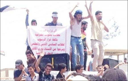 مئات الطلبة يتظاهرون في البياع ببغداد للمطالبة بإعادة تصحيح دفاترهم الامتحانية